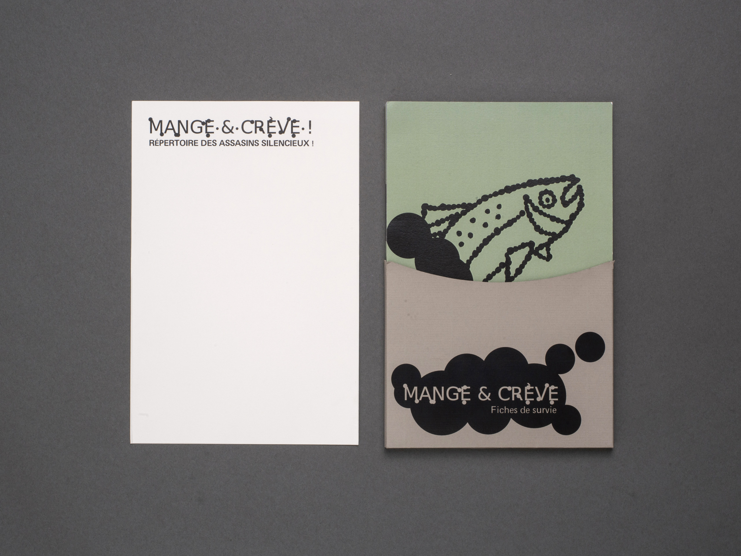 Mange et crève propose un guide pour survivre aux micro-intoxications alimentaires dues à une mauvaise cuisson ou à une mauvaise conservation. Le projet s’inspire de la typographie “ Fungal ”, autour de laquelle s’articule un univers visuel cohérent rappelant le processus de l’intoxication. Les différents objets ici présentés visent d’une part à sensibiliser le public aux dangers liés aux toxines et d’autre part à promouvoir des pratiques alimentaires plus sûres.